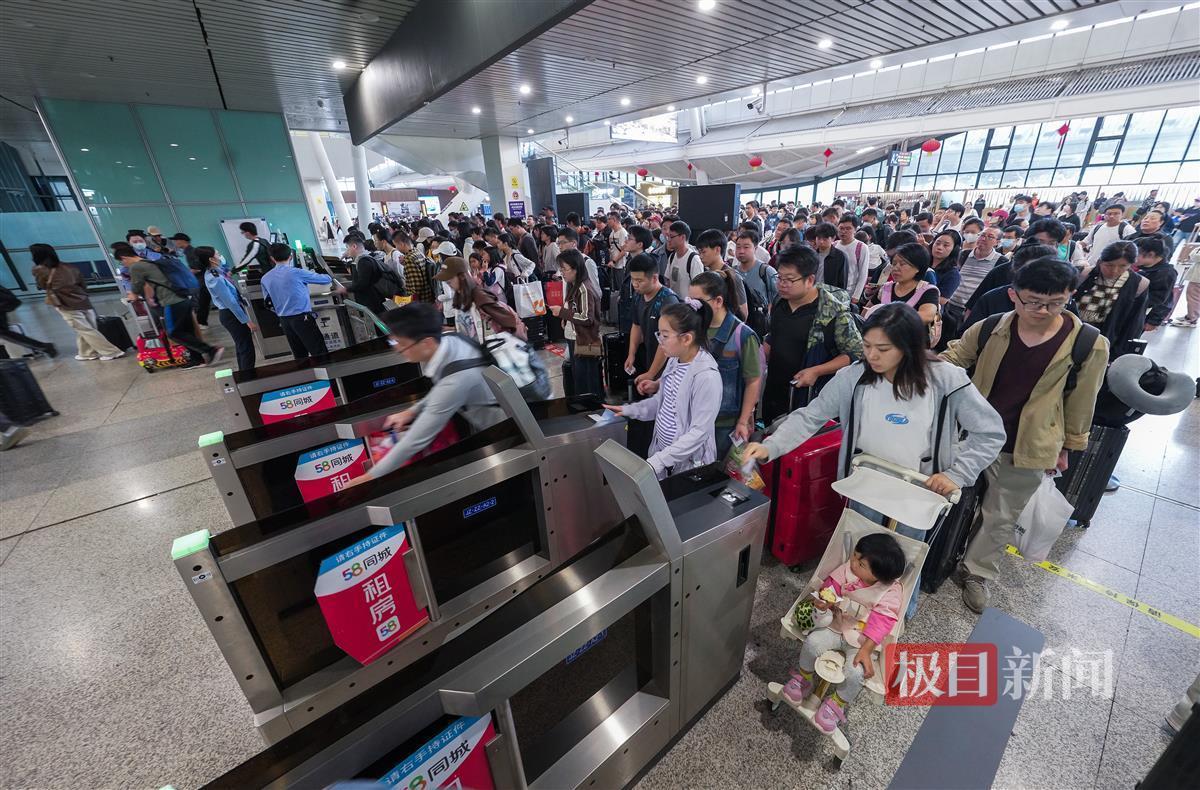 10月6日,“双节”长假进入最后一天,铁路迎来返程客流高峰。武汉火车站当日预计发送旅客近15万人次。据悉,铁路中秋国庆黄金周运输自9月27日启动至10月8日结束,为期12天,武汉火车站预计往返客流约196万人次,单日最高峰近30万人次,全国铁路预计发送旅客1.9亿人次,日均发送旅客1583万人次。