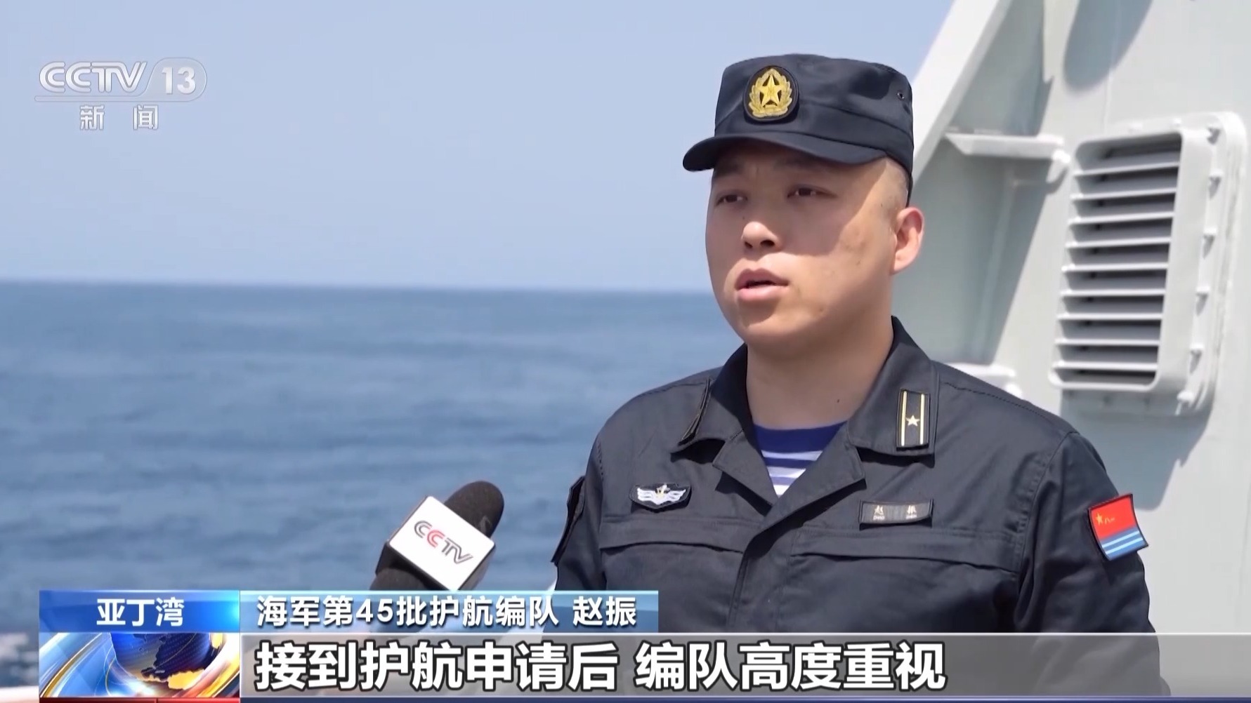 海军第45批护航编队 赵振:当前,亚丁湾海区为季风转换期,也是海盗劫船事件高发时段。接到护航申请后,编队高度重视,为确保护航船只安全顺利通过黄金水道,及时调整预定护航计划,安排临沂舰为“中兴门”实施“一对一”伴随护航。