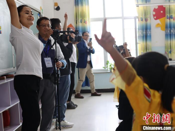 近日,泰国记者协会主席孟孔(左二)走进喀什地区疏附县吾库萨克镇七村学校参访。 中新社记者 薄雯雯 摄