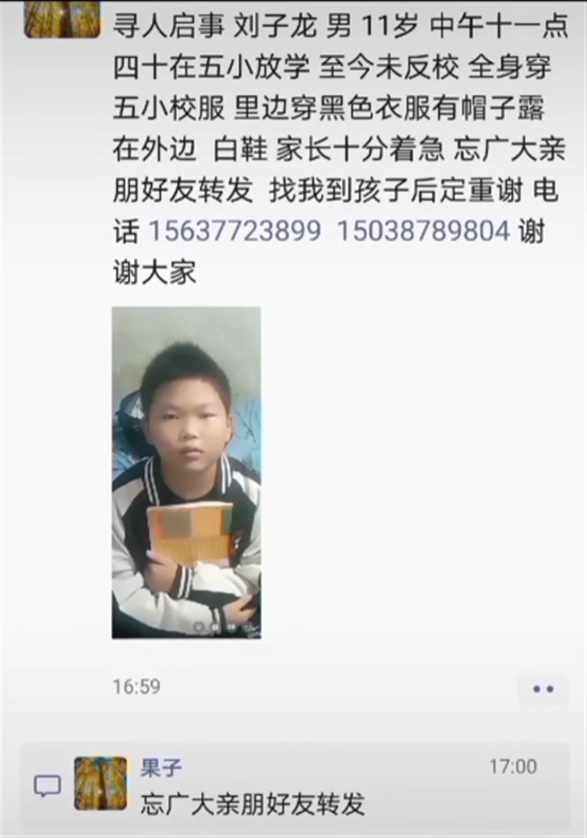 如有线索,请联系孩子家长:15637723899、15038789804。
