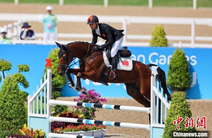 10月2日,杭州亚运会马术三项赛场地障碍团体决赛及个人决赛举行。中国选手华天获得马术三项赛场地障碍个人金牌。 中新社记者 贾天勇 摄