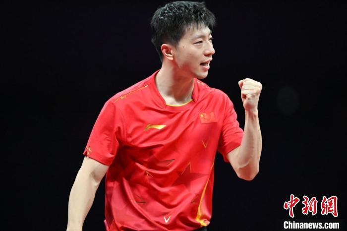 9月26日,杭州亚运会乒乓球男子团体决赛举行。中国队以3比0战胜韩国队,获得该项目八连冠。图为中国队选手马龙在比赛中庆祝得分。 中新社记者 骆云飞 摄