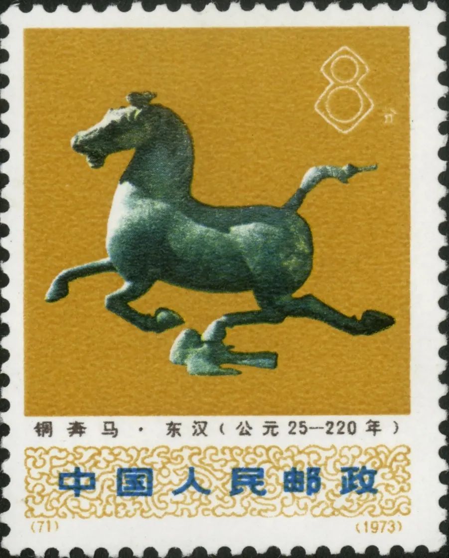 △1973年发行的一套邮票中,有一张图案是铜奔马。点击查看它背后的故事