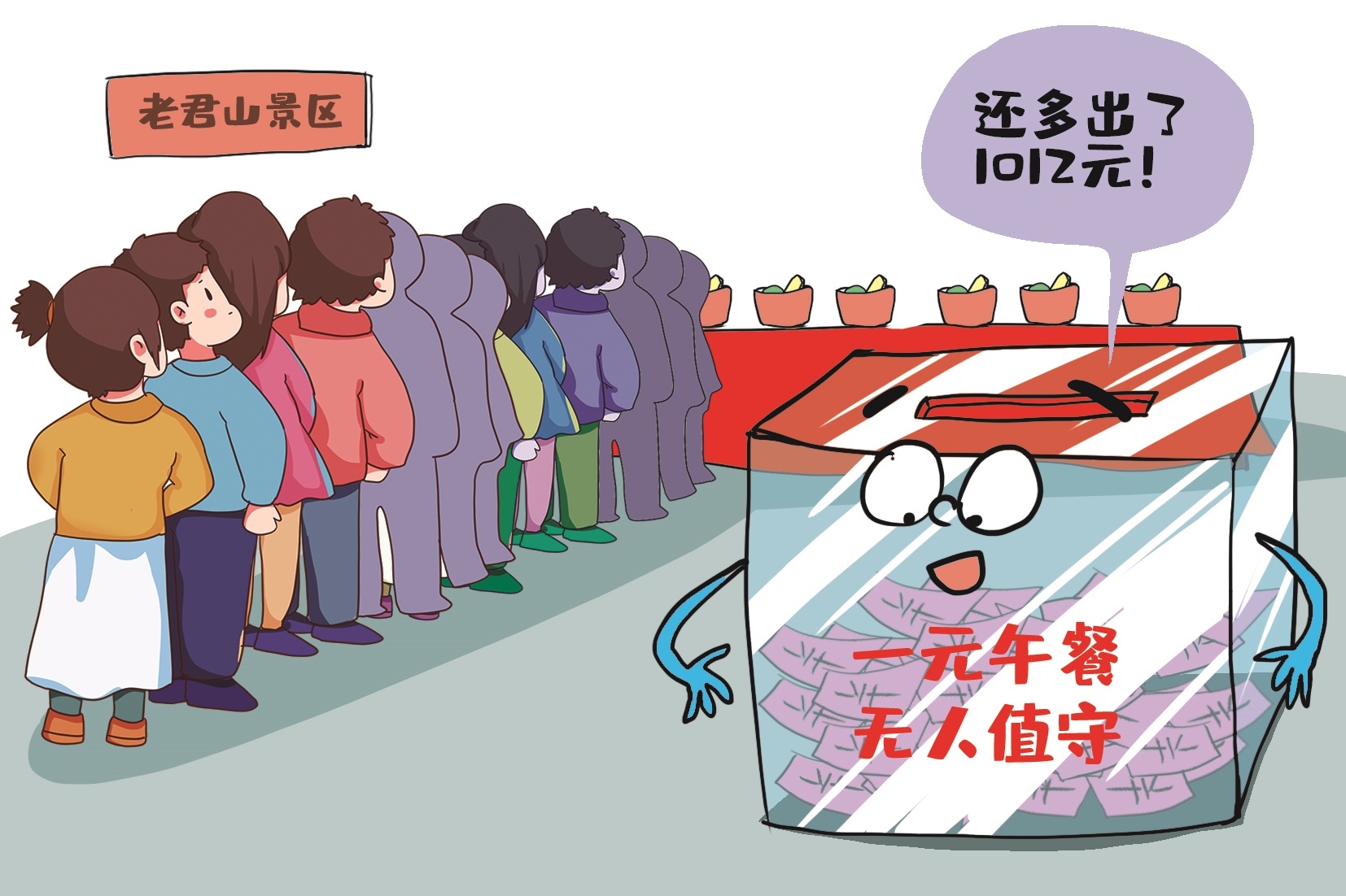虽然说老君山景区给游客提供的餐食,都是比较简单的面食、小菜和水果,算不上什么大餐,但是1元钱保证吃饱,也是买不了吃亏买不了上当。在无人值守的情况下,饭钱一分没少,反倒还多出1012元,说明有不少游客认为这午餐超值,愿意给景区多一点回馈,让他们把这个活动坚持办下去,惠及更多游客。这是一种可贵的信任,也是一份温暖的善意。景区为游客想得周到,游客也让景区感受到支持,这样的双向奔赴,无疑是长假文旅市场中令人欣慰和感动的一幕风景。