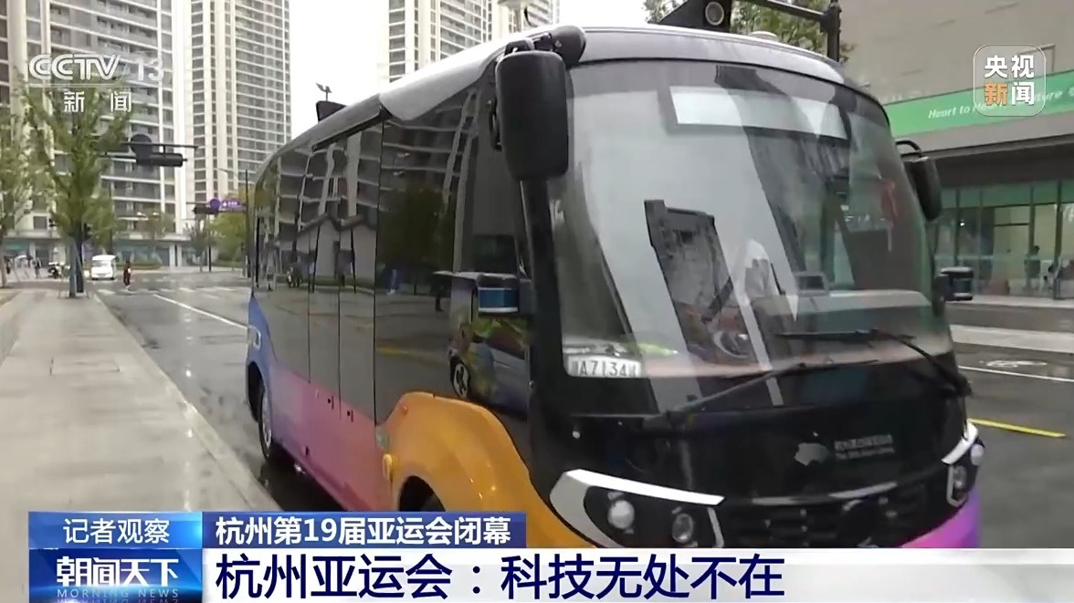 总台央视记者 黄达:我的亚运关键词,今天想跟大家分享的是“科技”。从镜头中,大家可能已经猜到我们现在就在穿梭于亚运村媒体村的无人驾驶小巴上。在过去开赛前和赛时的时间里,这辆小巴不断出现在各个媒体的镜头中。