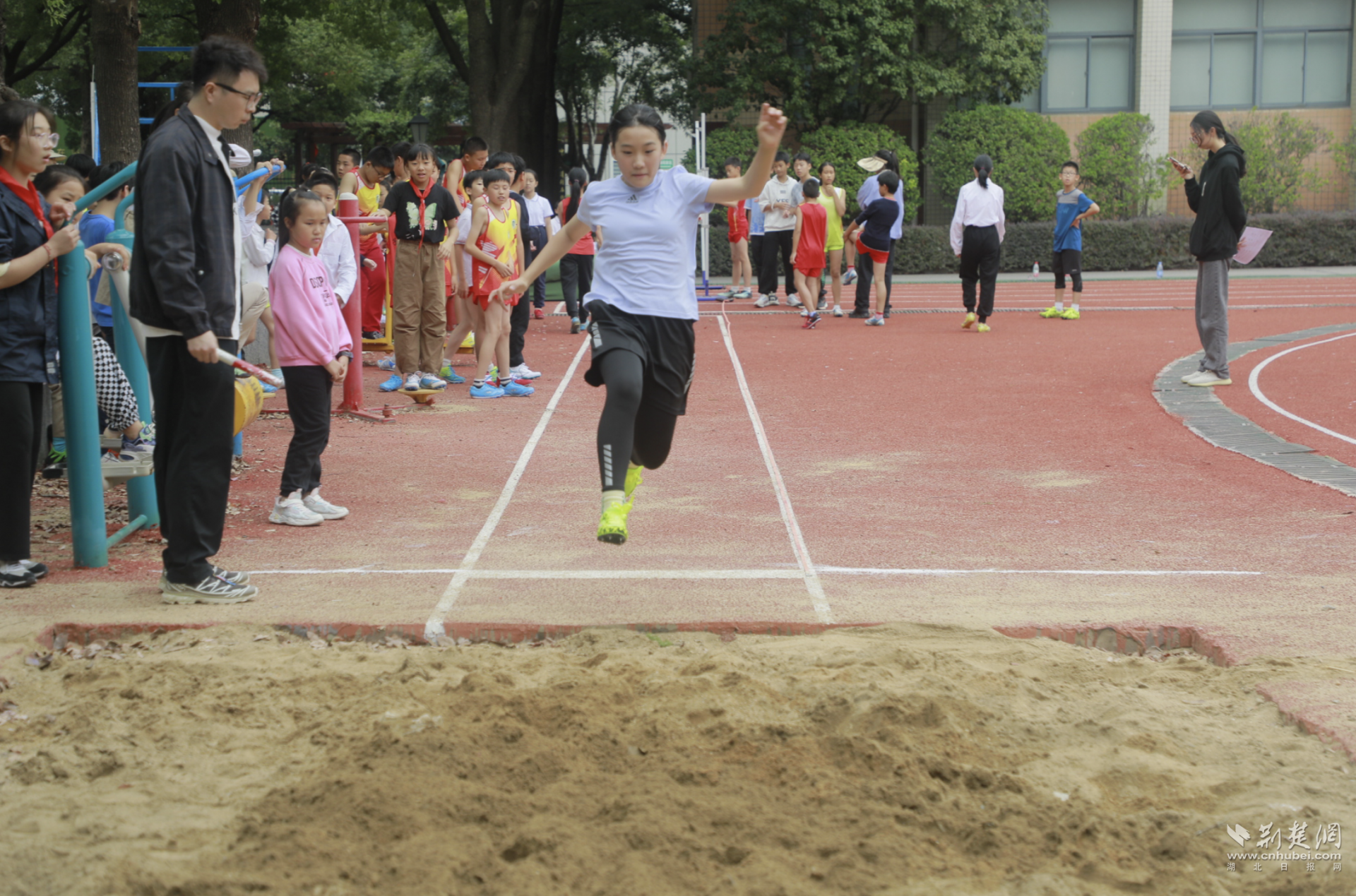 荆楚网(湖北日报网)讯(记者林杉 通讯员李欢)赛场上,运动健儿们激情飞扬、奋力拼搏;看台上,观众们热情高涨,为运动员们呐喊加油。10月8日,武汉经开区“三适”教联体田径友谊赛在武汉经济技术开发区神龙小学田径场举行。