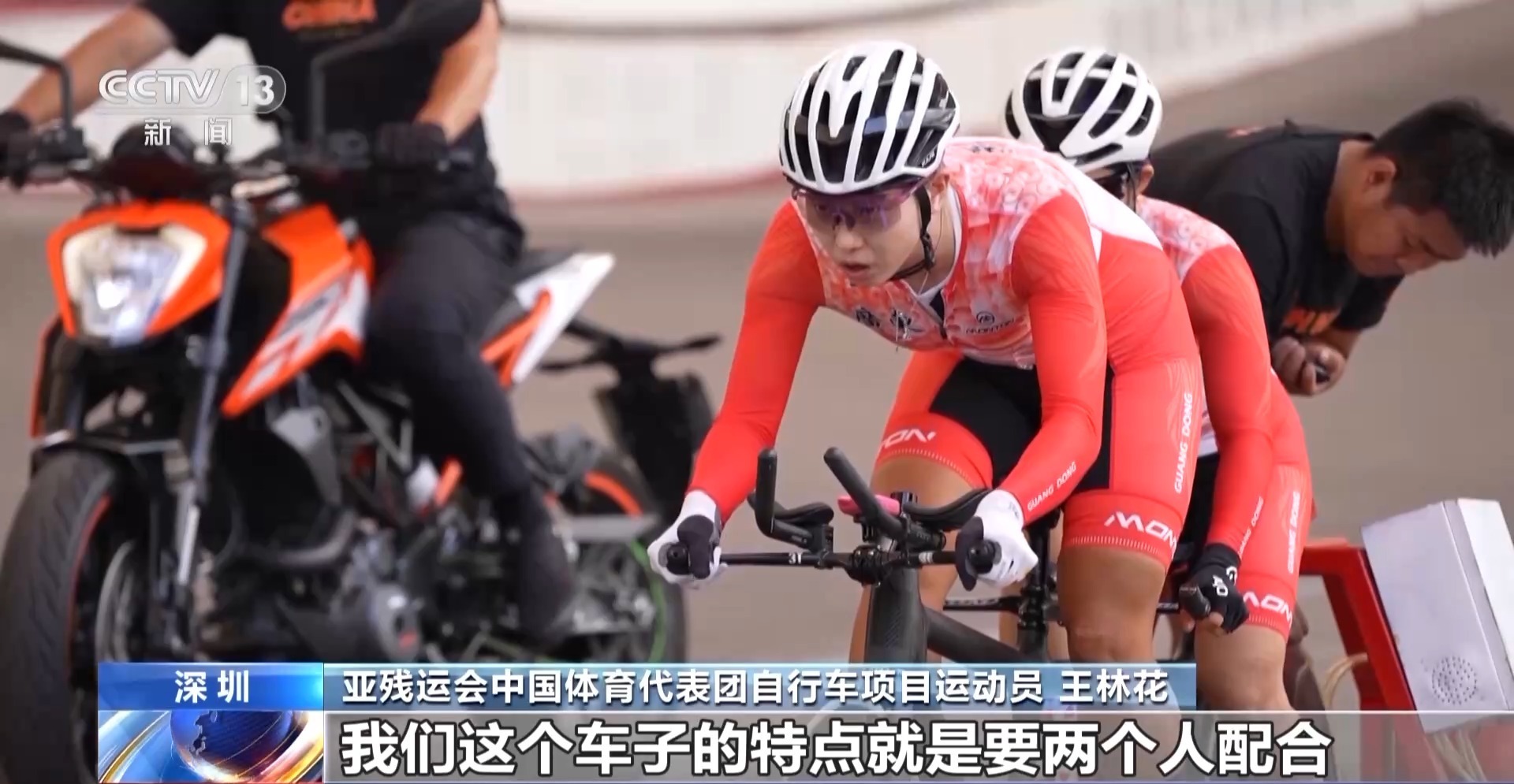 亚残运会中国体育代表团自行车项目运动员 王林花:我是视障的,车子的特点就是要两个人配合。