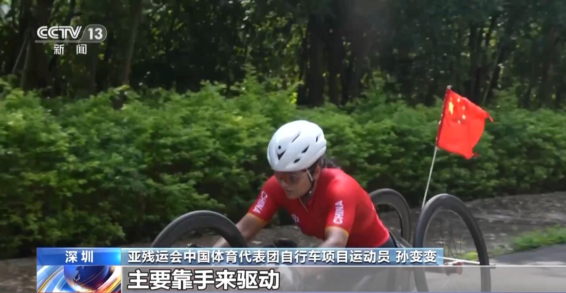亚残运会中国体育代表团自行车项目运动员 孙变变:手摇自行车主要靠手来驱动,要有很好的核心力量和上肢力量去控制这个车。