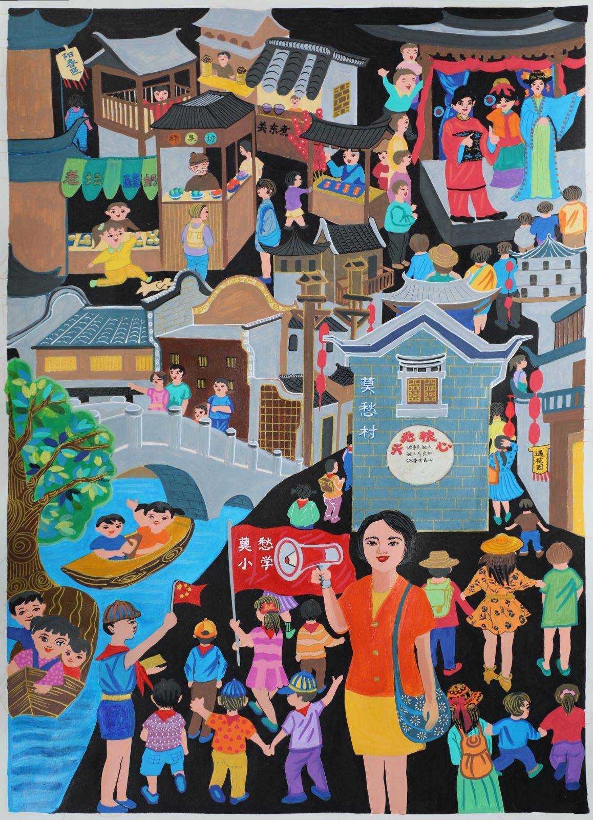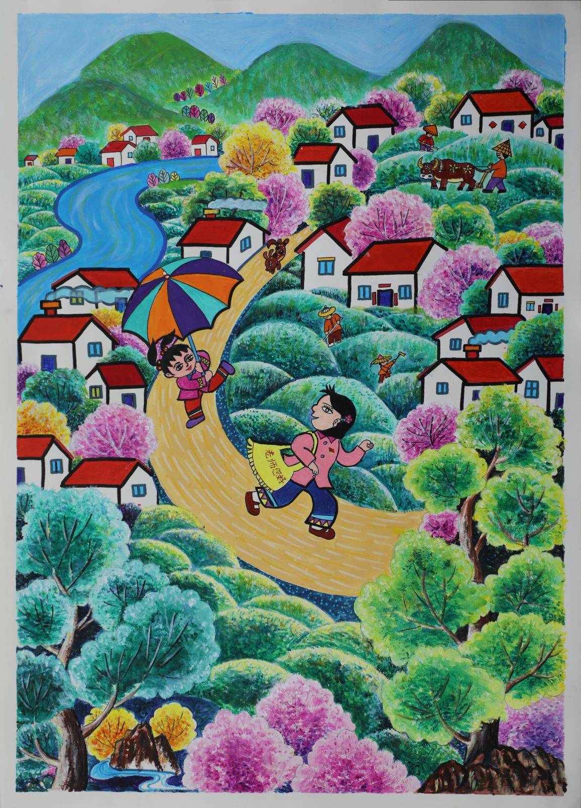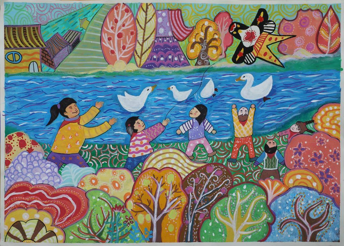 这次展出的插画作品,用丰富色彩描摹校园生活,用生动线条勾勒教育情境,绘就师生共同学习、生活、成长的动人画卷,洋溢着浓郁的乡土气息,展现了荆楚乡村教师高尚的教育情怀。