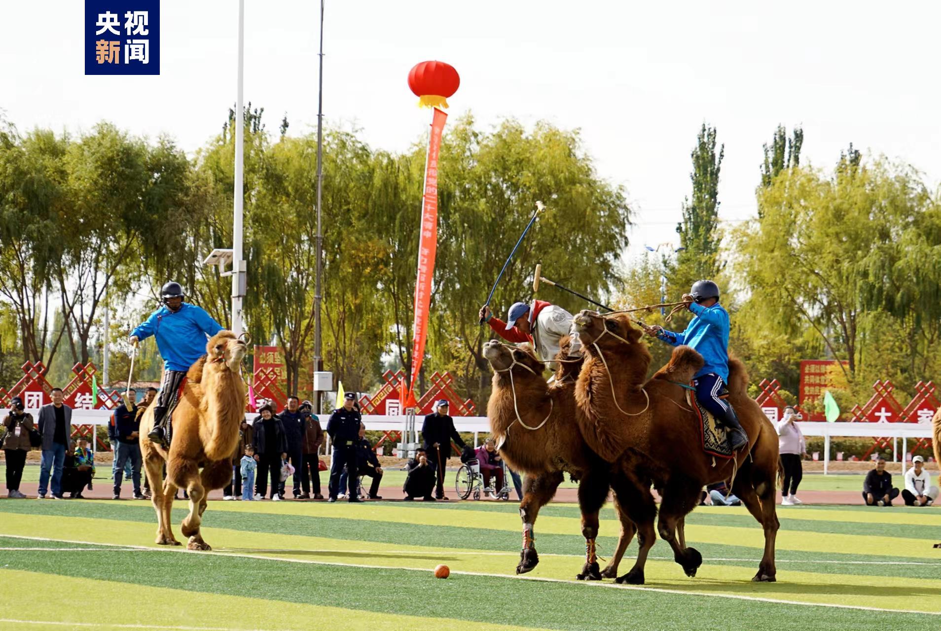 在乌拉特后旗驼球赛场上,来自中蒙两国驼球运动员碰球杆致意后,在裁判员的一声令下挥动球杆火热开赛,比赛选手们足蹬长靴,手持球杆将轻巧的驼球一次次击出,威武的红驼前驱后驰与驼球手们完美配合完成漂亮进球,现场吆喝声、加油声交织在一起,场面意趣盎然。