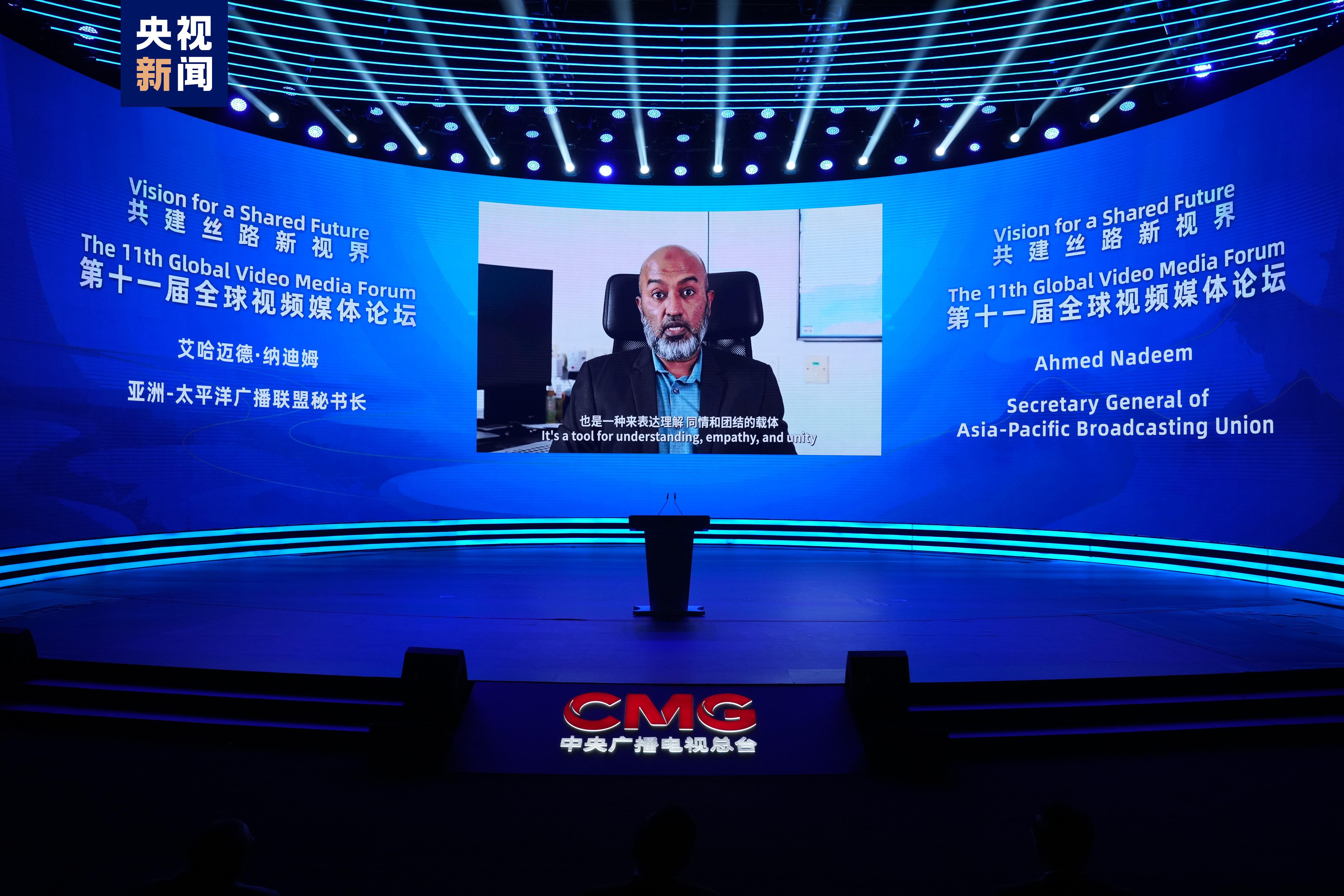 10月12日,由中央广播电视总台主办的第十一届全球视频媒体论坛在北京举行。中宣部副部长、中央广播电视总台台长慎海雄,中宣部副部长、国务院新闻办公室主任孙业礼出席活动并致辞。非洲广播联盟首席执行官格雷瓜尔·贾卡、亚洲-太平洋广播联盟秘书长艾哈迈德·纳迪姆、阿联酋通讯社社长穆罕默德·拉伊斯、太平洋岛国新闻联盟主席可拉·努、欧洲新闻交换联盟总经理阿德里安·威尔斯、新加坡《联合早报》执行总编辑韩咏梅作主旨演讲。