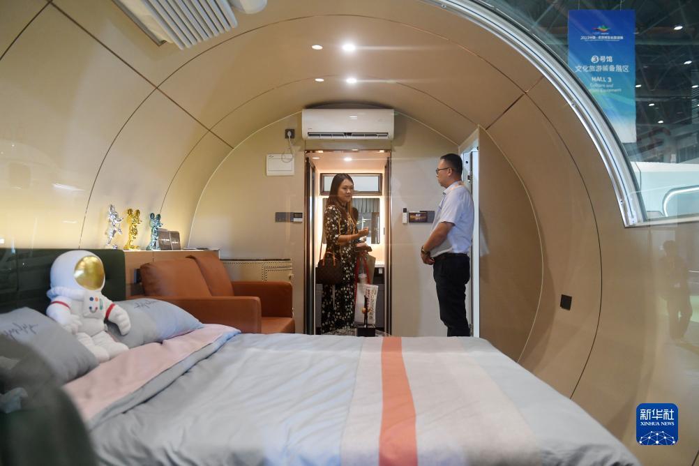 10月13日,在广西桂林新国际会展中心,人们在文化旅游装备展区参观。