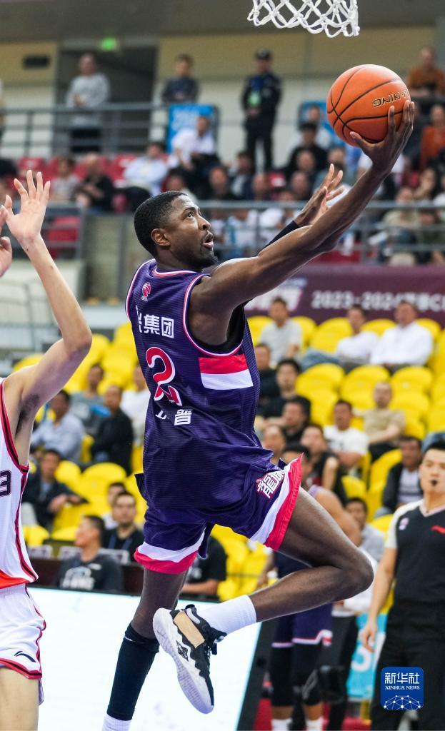 10月13日,广州龙狮队球员坎普在比赛中上篮。