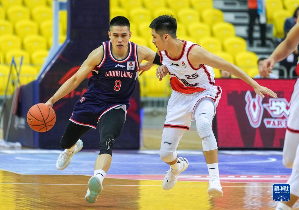 10月13日,广州龙狮队球员刘颜诚(右一)在比赛中带球突破。