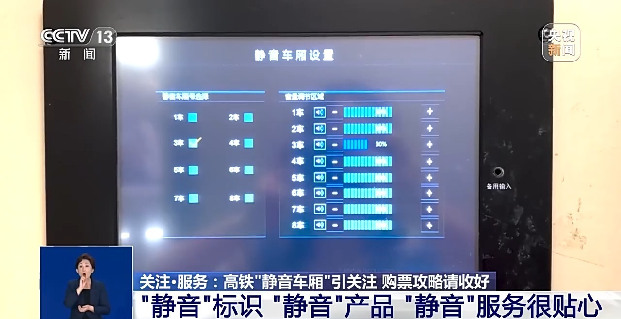 关注服务,新闻课堂。乘坐高铁时,刚想闭目养神,就被周围人大声打电话吵得困意全无,本欲安静地看看书,旁边乘客电子设备的外放声却搅得人心神不宁,您是不是也经常有类似经历呢?最近两天,国铁集团在其社交媒体账号上发布了“静音车厢”购票攻略,一时间冲上热搜。“静音车厢”是否真的能让我们实现在高铁上“静一静”的愿望?这类车厢如何购票?目前又有哪些线路开通了“静音车厢”呢?一起进入今天的关注服务。