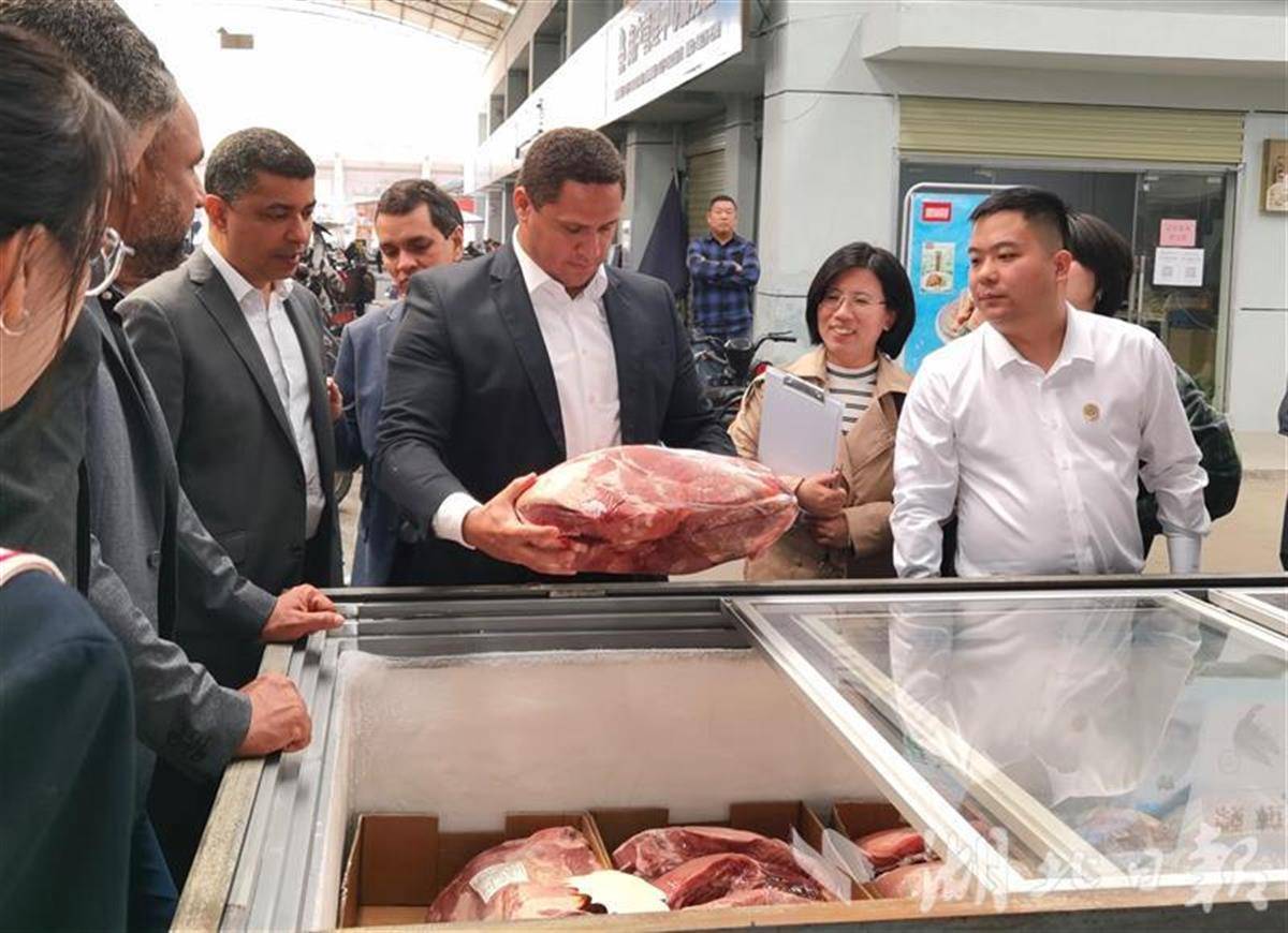 “这些肉都是从巴西来的吗?”“种类真丰富!”10月13日,巴西马拉尼昂州副州长兼教育厅长费利佩·卡马朗一行来到了华中最大冻品批发交易市场——增益冷链(武汉)交易中心,认真查看市场内巴西农鲜产品,了解巴西农产品在湖北运输、销售情况。