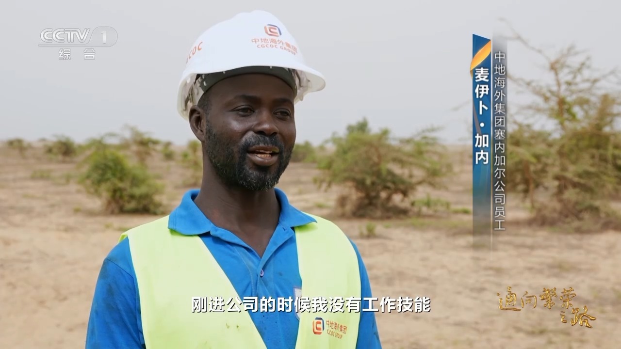 中地海外集团塞内加尔公司员工 麦伊卜·加内:刚进公司的时候我没有工作技能。现在我学会了很多技能,比如钻井,还得到了一份钻井的工作。