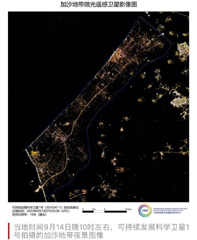 记者从可持续发展大数据国际研究中心(以下简称SDG中心)获取的最新卫星影像显示,由于以色列切断了电力供应,在全球人口最密集地区之一的加沙地带夜晚几乎完全陷入黑暗,这与该地区此前夜晚的灯火通明形成鲜明对比,这也凸显出加沙地带民众当下生存处境的艰难。