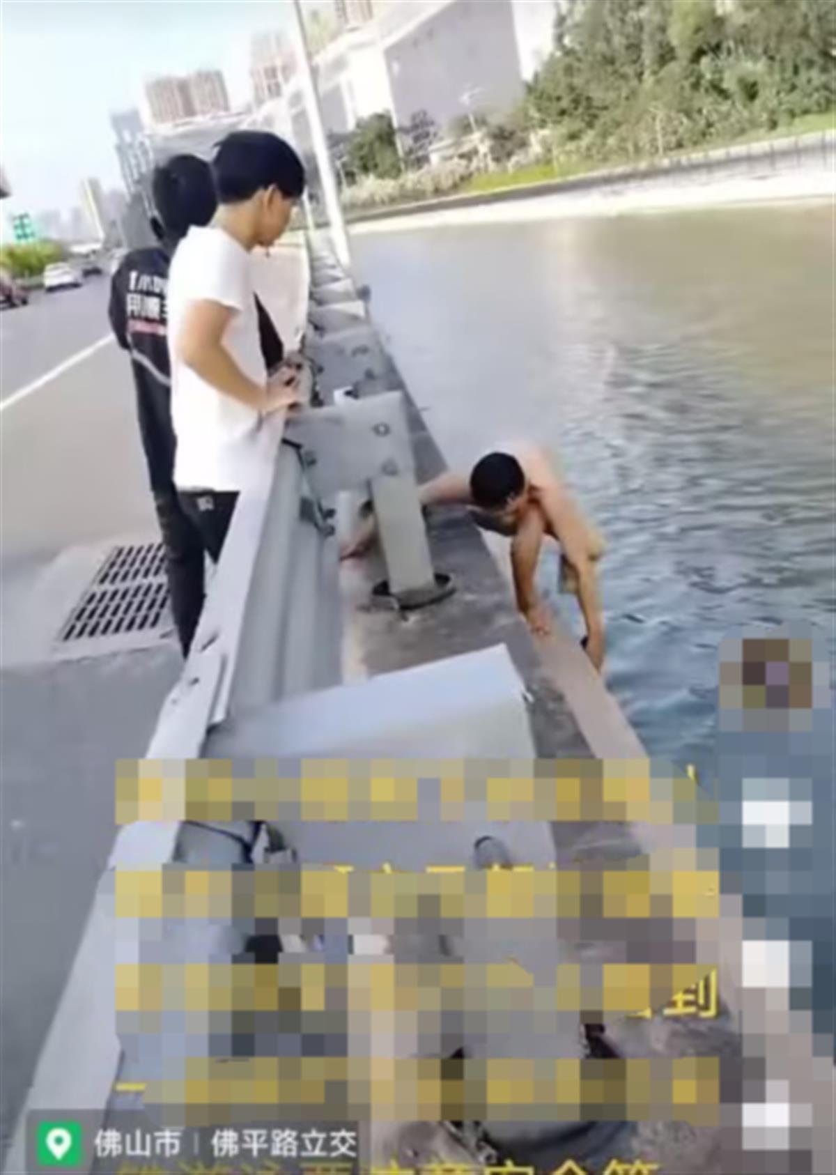 10月15日,视频发布者钟先生告诉极目新闻记者,14日下午3时许,他路过佛山市南海区佛平路立交附近时,听到河中有人在大喊救命,现场已有一名外卖小哥在尝试救人。外卖小哥先尝试将腿伸到河中营救,没能成功,随后脱掉衣服跳入河中营救。由于落水者较重,外卖小哥只能将他拖至岸边后,先爬上岸。现场一名快递小哥报警后,也加入救人的队伍中来。他自己和现场几名群众在岸边共同努力,将落水者救了上来。