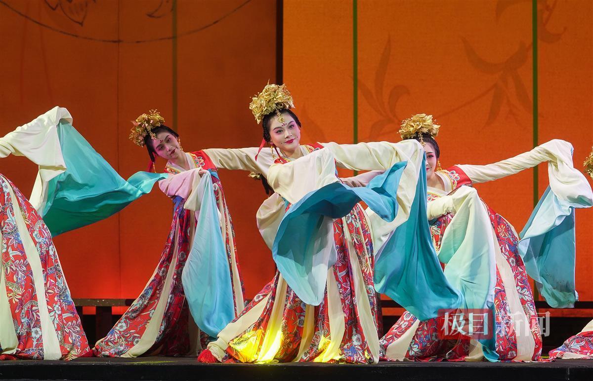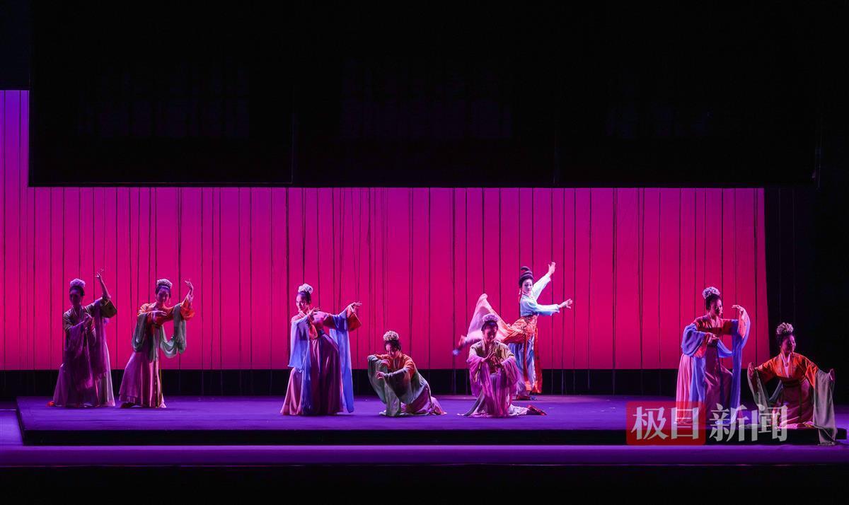 帘幕启,莲步移,开幕大戏《舞衣裳》,将满场观众“带入”华丽的盛唐,舞台上诗意的人文气息扑面而来,一袭舞衣,展开了唐朝名将王忠嗣之女,宰相元载之妻王韫秀的跌宕人生。