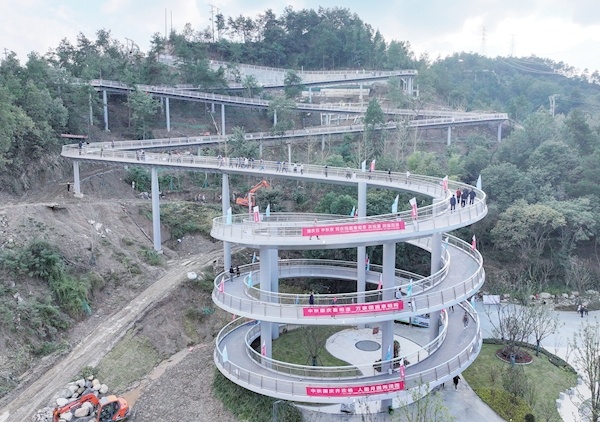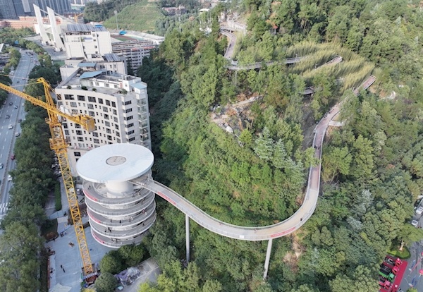 据该负责人介绍,螺旋塔的主要功能是减缓坡度,采用合理的结构解决高差问题,让市民可以轻松地登山赏景。同时,螺旋塔路面采用陶瓷颗粒为主要材料,具有耐低温、耐老化、吸热低、耐高温、防滑等诸多优点,而且重量较轻,不会影响桥梁的承重。