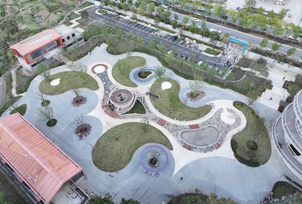 紫园入口:占地面积13274平方米,以武当太极文化为主题,融入汽车文化元素,设置综合服务驿站、步道管理用房、集散广场、休闲健身场地、亲子游园、综合停车场等功能设施。其中停车位57个,包含2个大巴车位,15个充电车位。