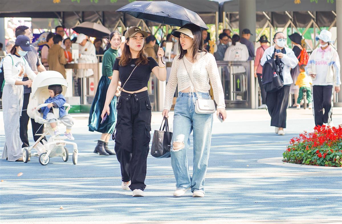 阳光的强烈,让大家重视防晒,重拾防晒帽、遮阳伞。记者昨日(10月17日)在武汉动物园看到,家长和孩童都戴上了遮阳帽,有的女士不仅戴遮阳帽,还打着遮阳伞以做好双重防护,“没想到享受一段秋凉,又回味几日夏天。”游客汪女士感慨天气不按常理出牌。