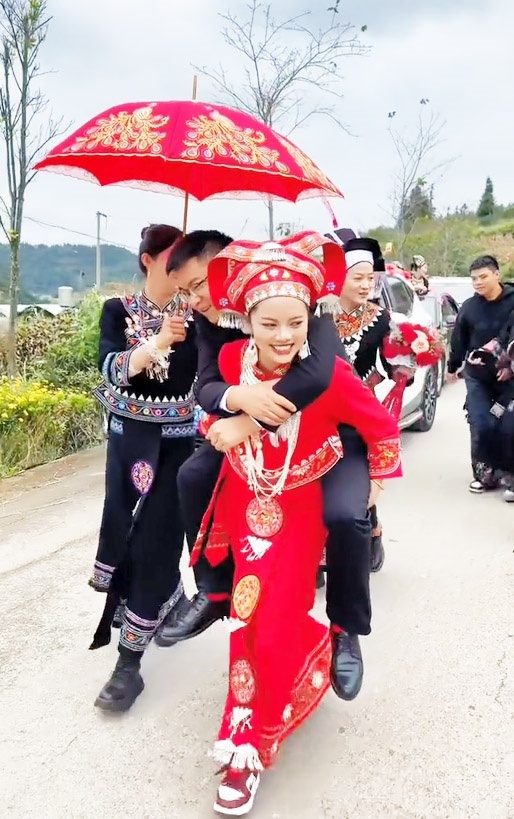 楚天都市报极目新闻讯(记者丁伟)“我来娶老公,快开门!”10月15日,云南文山,一对新人举行婚礼,新娘来了个反向接亲,不但去酒店“迎娶”新郎,还把新郎背回了家。17日,极目新闻记者了解到,新郎和新娘是大学同学,两人相恋6年,此前已在男方家举办了婚礼,这是回到女方家再次举行的一场仪式,新娘为了让新郎也能感受到被重视,就来了一个反向接亲。