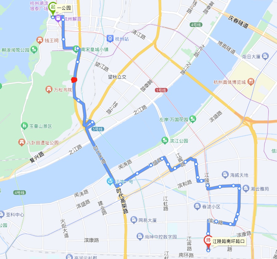 杭州195路线路图,红点站为当夜停车报警的站点