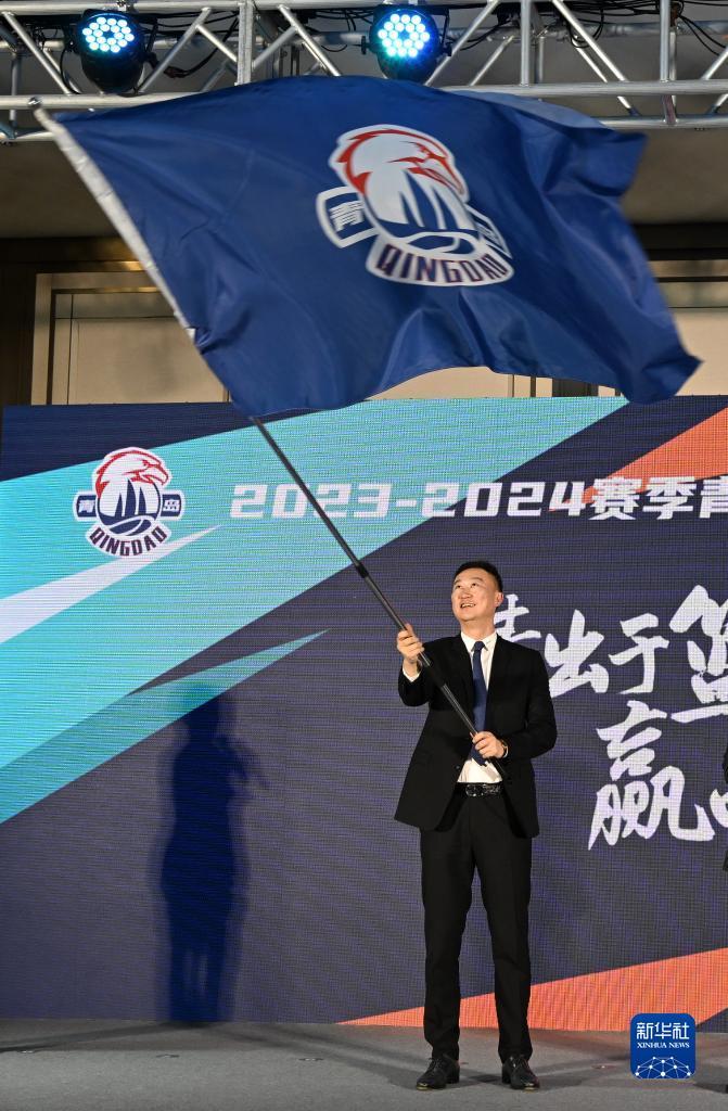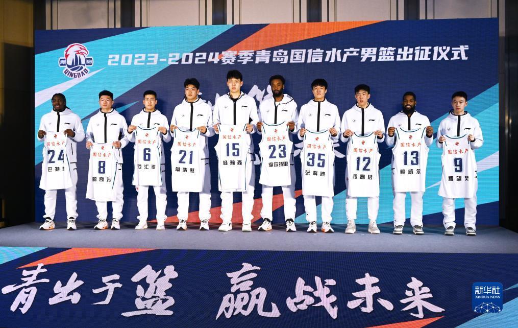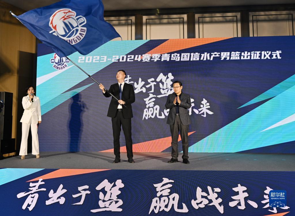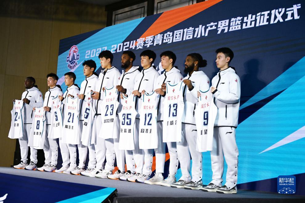 当日,青岛国信水产队在山东青岛举行2023-2024赛季中国男子职业篮球联赛(CBA)出征仪式。