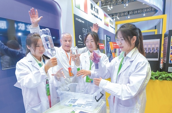 展示会中的“一带一路”科普展邀请到9个“一带一路”沿线国家的科普机构参展,外国友人和中国志愿者与观众面对面互动。