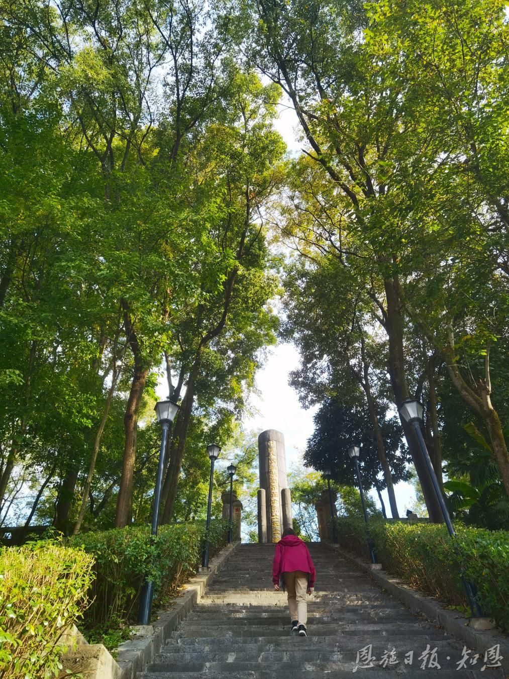 一步,两步,三步……10月16日上午9点,恩施市六角亭街道办事处解放路社区象牙山下,沿着石阶上行,77岁的汤凌每一步都走得缓慢又坚定。行至半处,停下脚步,歇一口气,望了望上方矗立的中国人民解放战争革命烈士纪念碑,继续往上走。