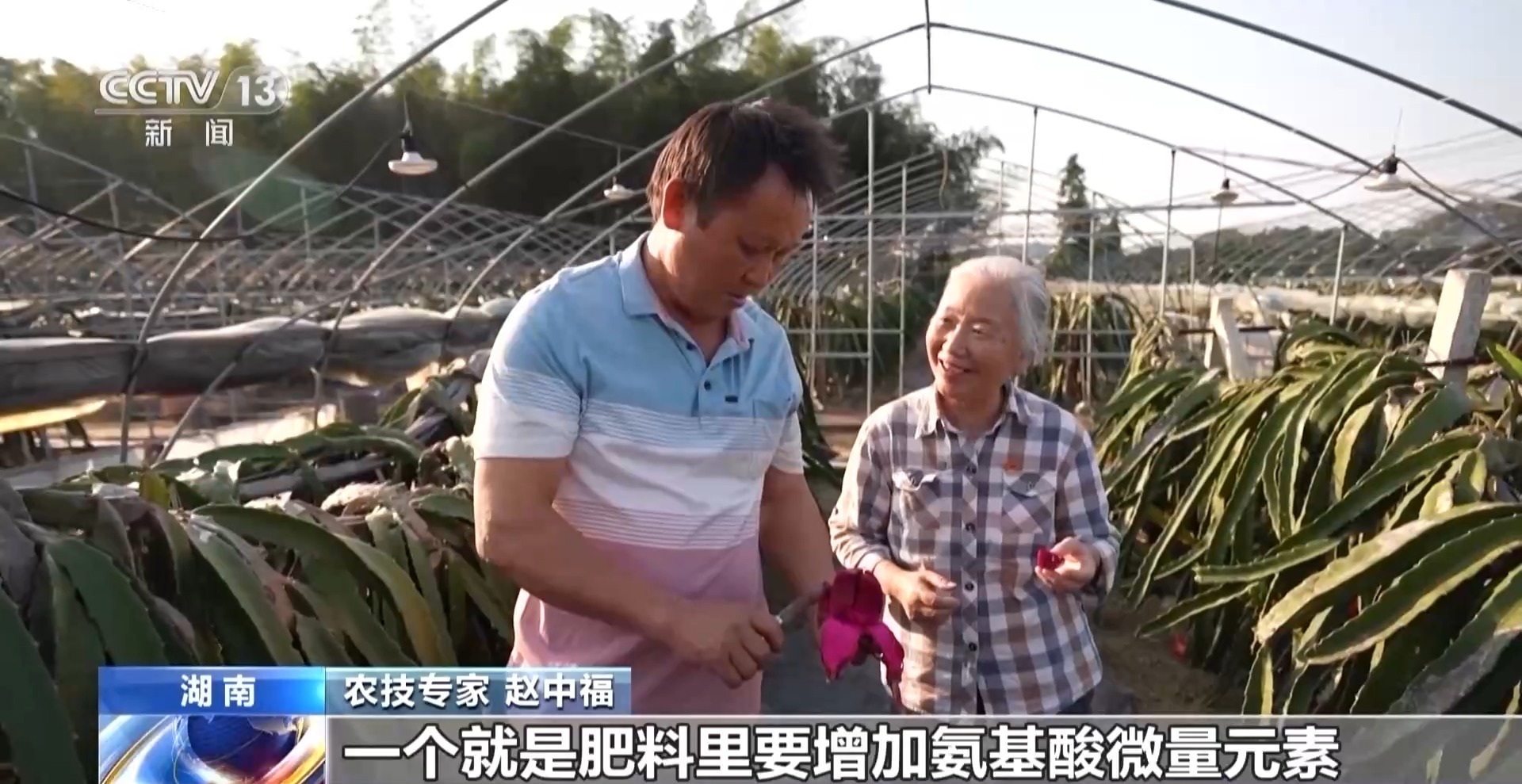 最近正是火龙果收获的季节,一些客商反应种植户李成生家的火龙果不够甜,李成生赶紧打电话请赵中福老人来基地看看。