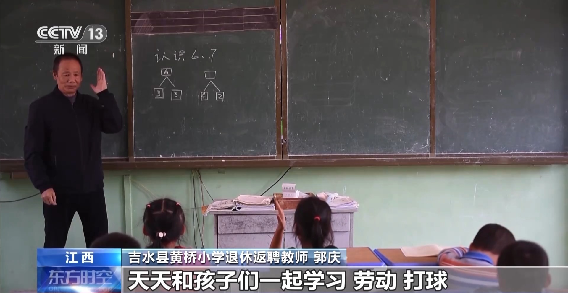 江西吉水县黄桥小学退休返聘教师 郭庆:他们都喜欢围着我,都叫我“爷爷老师”。天天和孩子们一起学习、劳动、打球,使我感到自己年轻了好多。
