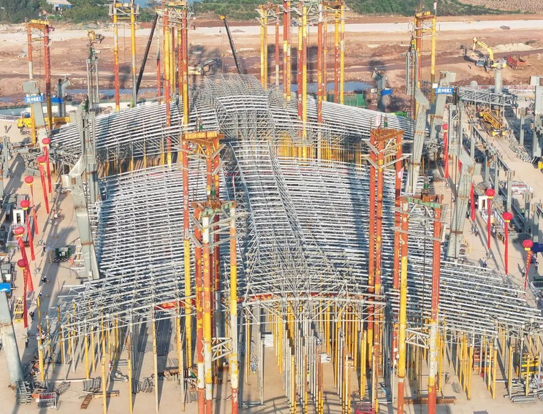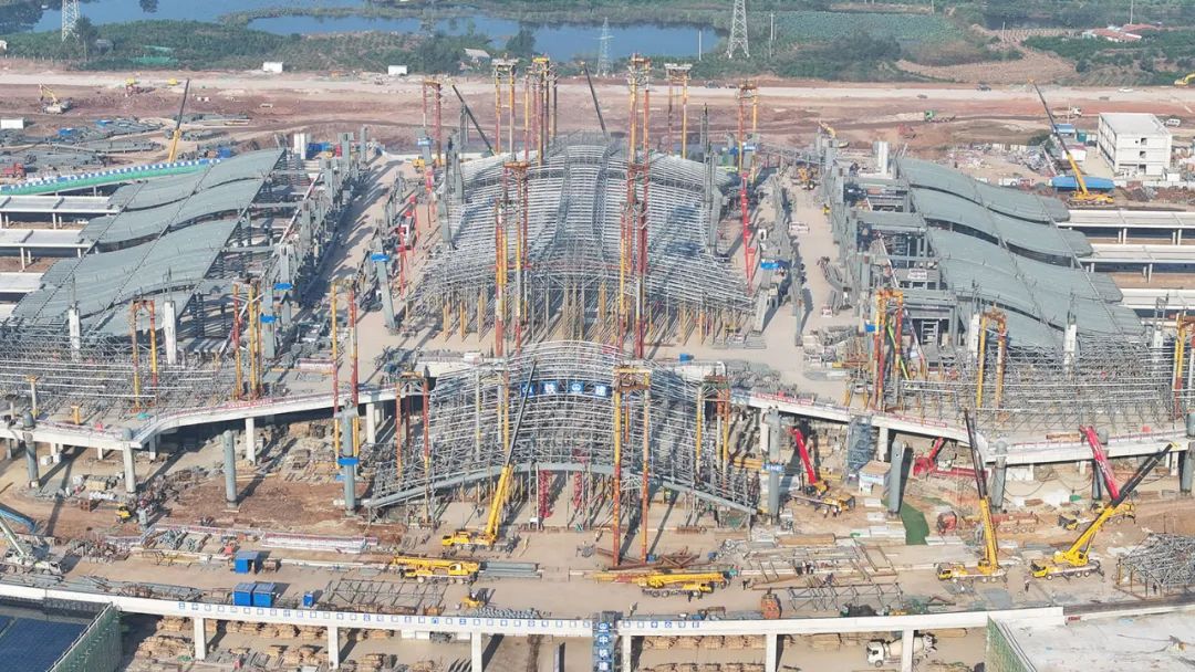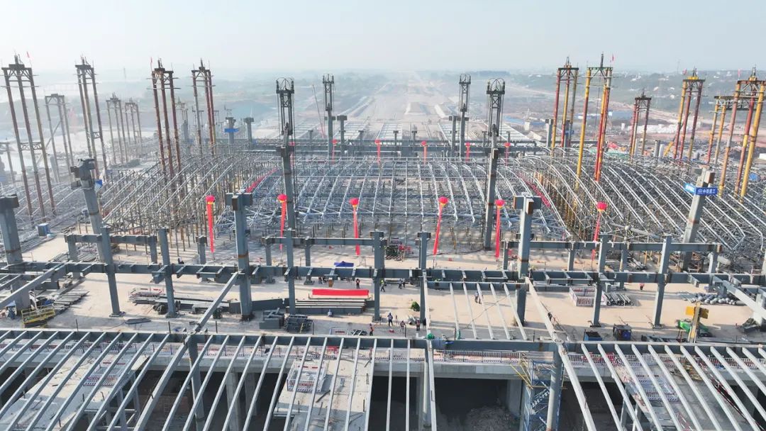 俯瞰荆门西站,屋顶雏形渐显。 张彩云 摄