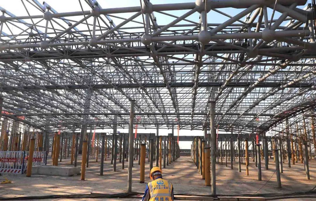 荆门西站首块提升的钢网架。张彩云 摄