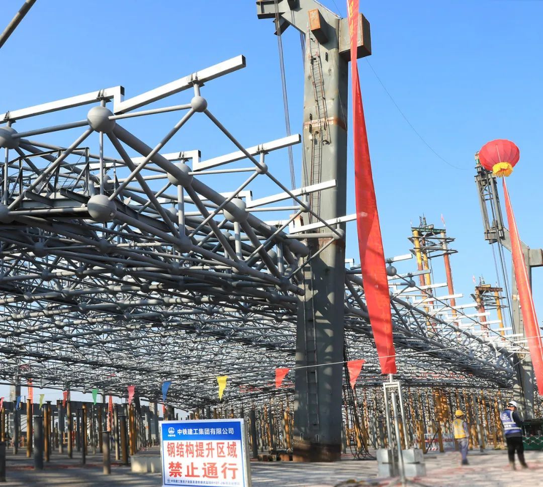 荆门西站项目钢网架提升现场。张彩云 摄