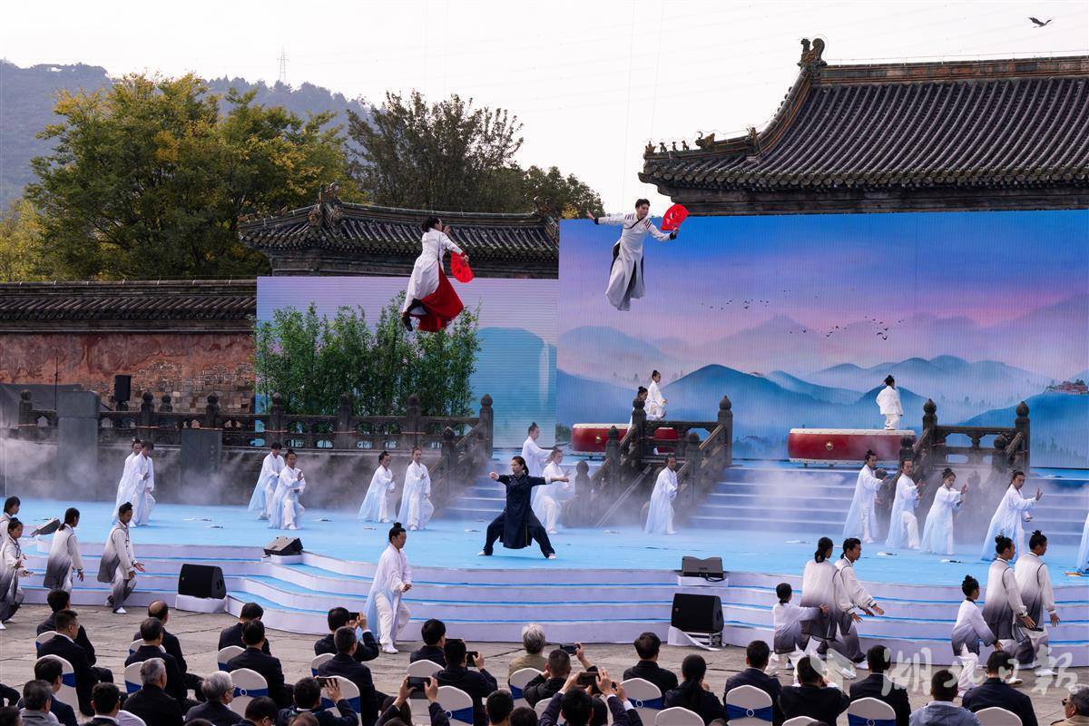 本次大会的开幕式以武当历代宫殿古建为依托,全程贯以太极文化和元素,围绕玉虚街、玉虚宫所在的中轴线缓缓展开,通过“一线三洞天”的形式,采用“沉浸式+太极秀+开幕式”的方式,在“千人太极”中让开幕式的高潮渐次呈现。
