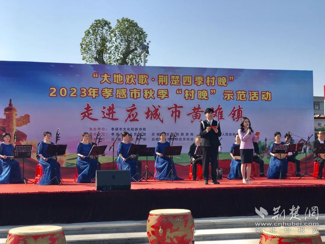 荆楚网(湖北日报网)讯(通讯员 唐会军 黄磊)近日,应城市黄滩镇幸福公园里热闹非凡,“大地欢歌·荆楚四季村晚”2023年孝感市秋“村晚”示范活动在这里精彩上演,为村民们送上了一场充满家乡味的联欢会。
