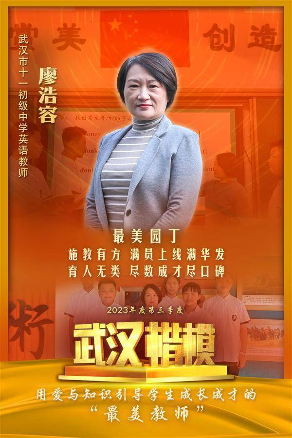 廖浩容从教32年,担任班主任27年。身为英语教师,她所带的班级英语成绩优秀。作为班主任,她所带的2020届、2023届学生中考成绩斐然。