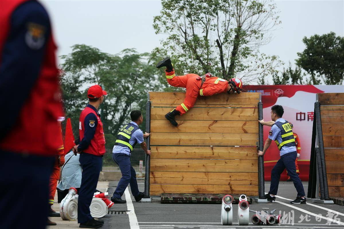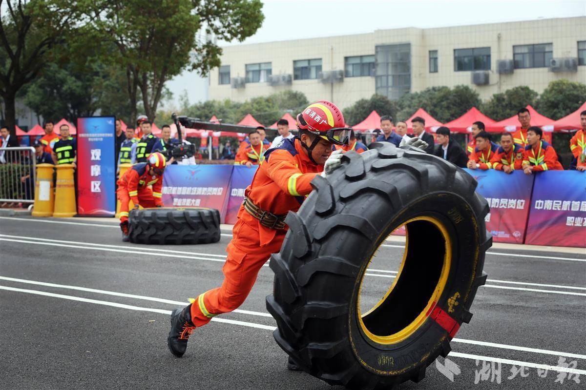 湖北日报讯(记者成熔兴、实习生刘逸鹏、通讯员张蒙、许英、敖祎晨)飞身一跃,翻过两米高的障碍板,稳稳落地;抬起160斤的轮胎,不断翻转,前行二十米……一幕幕血脉偾张的竞赛场景在武汉天河国际机场不断上演。10月25日,中南民航首届机场消防员岗位职业技能大赛在武汉开赛。