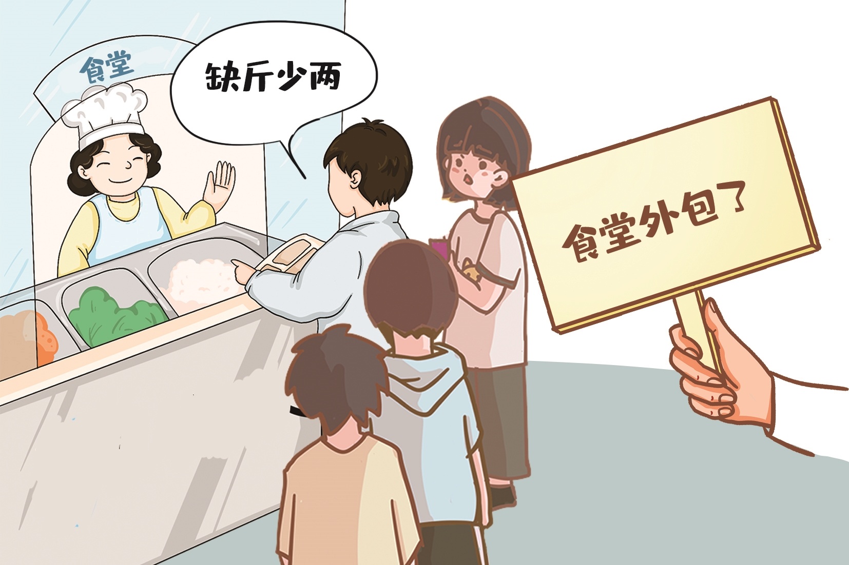现在一些高校,觉得把食堂外包给餐饮集团,就可以当“甩手掌柜”,没事就坐收承包费,有事就甩给“外来户”,这种想法是大错特错的。学生是学校招进来的,在学校学习和生活,学校当然要对他们的基本生活质量负责,而吃得安全健康实惠,就是最基本的生活保障。