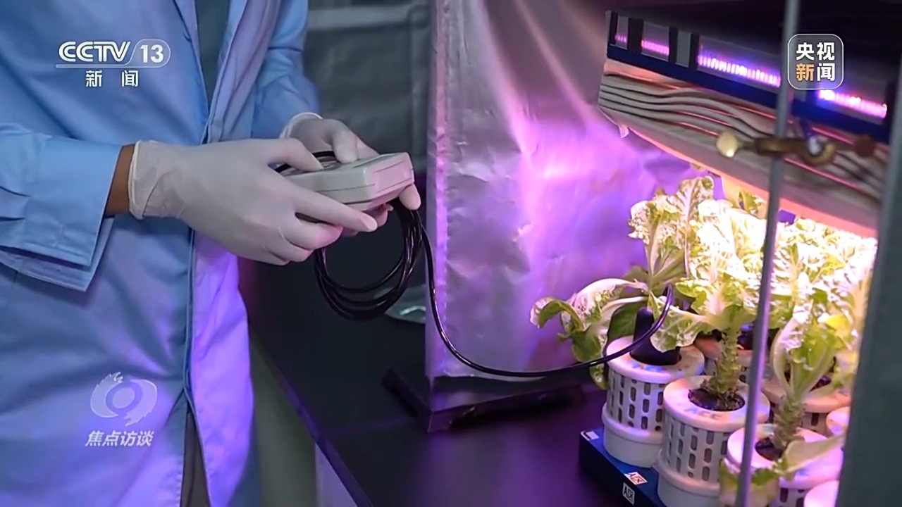 中国航天员科研训练中心环控生保室主任 卞强:这个就是我们和天上太空菜园同步进行植物栽培、浇灌、间苗等一系列活动,就是要对比天上和地上植物生长状态和长势有什么不一样的地方。