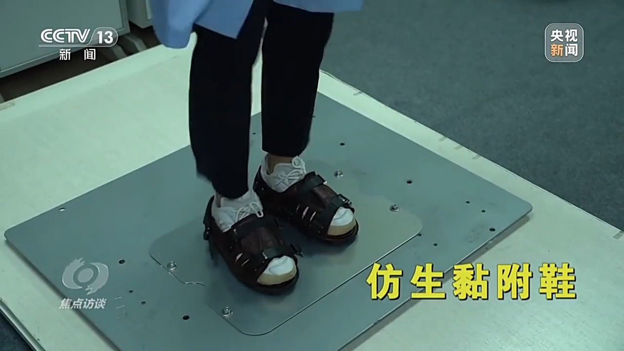 中国空间站进入运营期后,航天员的工作强度越来越大,怎么让锻炼工作两不误,研究人员结合任务特点不断为他们设计新的工具,供航天员在轨试验,仿生黏附鞋就是其中之一。