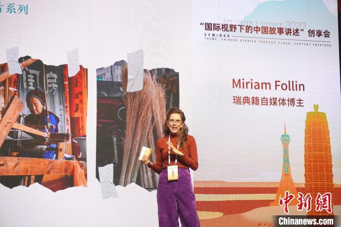 10月25日,河南郑州,瑞典自媒体博主“米粒”分享自己的视频创作心得。 中新社记者 韩章云 摄