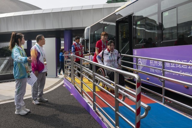 杭州亚残运的无碍,既在暖心的服务中,又在完善的设施里。亚残运期间,有1.2万“小青荷”为运动员提供无障碍服务。而围绕着运动员的衣食住行赛,杭州也为运动员提供了全方位的无障碍环境。从抵离环节开始,杭州萧山国际机场T4航站楼,设置2500米的无障碍盲道、1200米无障碍坡道、258台无障碍电梯,涵盖停车位、盲道、轮椅坡道及低位服务柜台、标识标牌等13个分项。安检区域设置4间临时非公开检查室、2间假肢维修室,配备座椅、助行器、检查床、防尘义肢袋等设施设备。除此之外,在交通工具、就餐环境、住宿环境等方面“无碍”也体现在时时处处,贴心保障运动员顺利完赛。