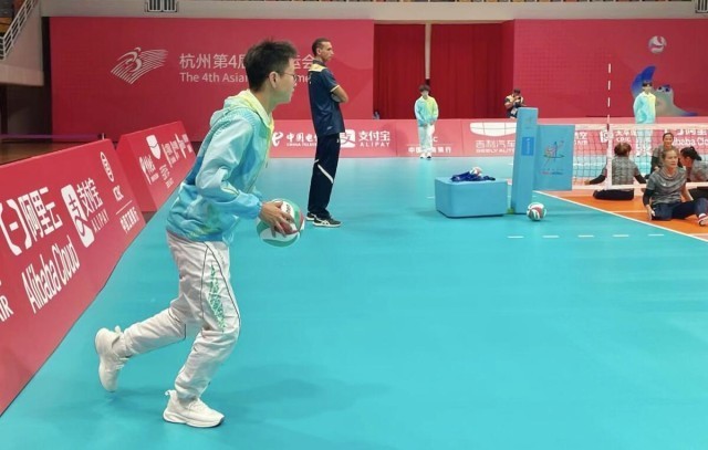 “捡球”这个工作听上去不难,似乎只需要捡起场外的球,擦干后再传回场内。但实际上,由于肢体残疾的运动员是坐着参加比赛,和站立式排球相比,亚残会会的“捡球”工作多了许多新的注意事项。