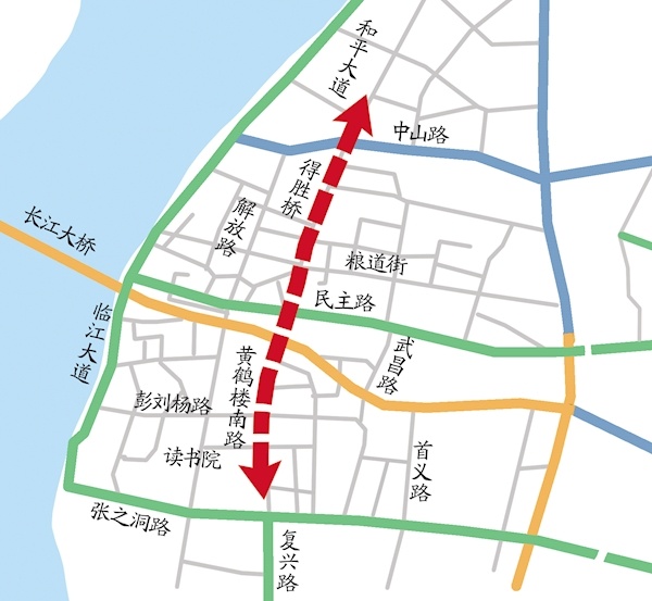 昨日上午,极目新闻记者驱车体验,从和平大道与三马路交叉口出发,3分钟抵达张之洞路。而此前,市民需从临江大道或中山路绕行,耗时20分钟左右。