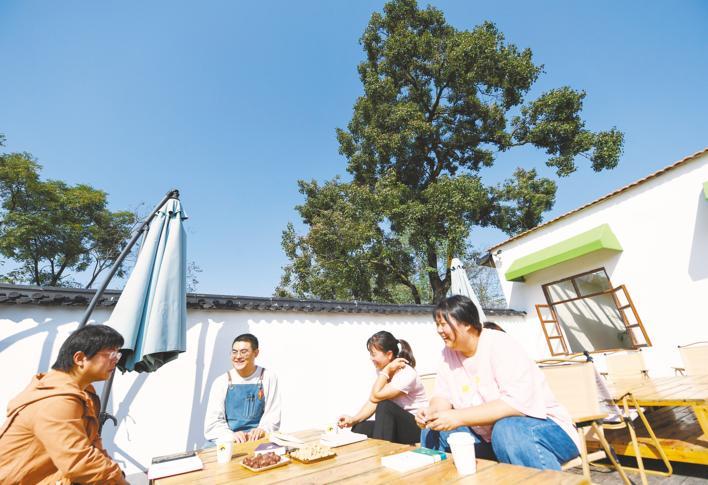 5名从南阳来的游客坐在庭院中,休闲地喝着咖啡。“环境好,风景好,真惬意。”游客周悦说。