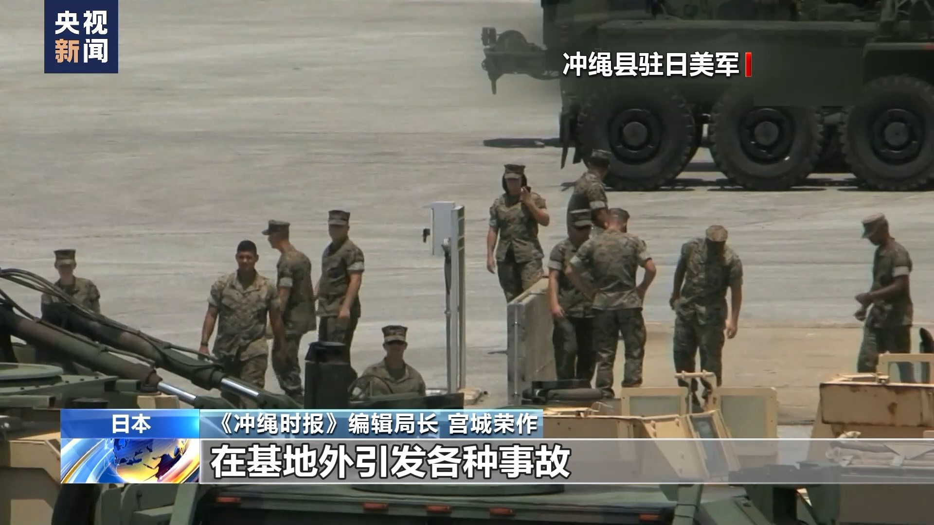 《冲绳时报》编辑局长 宫城荣作:(冲绳县的美军基地)包括军人军属,人数有约三万人,在基地外引发各种事故,军用机训练还发出噪声,尽管日美之间有协议规定,夜晚10点到早上6点间不允许发出噪声,但美军根本没有遵守。(驻日美军制造了)案件、事故、噪声,再加上最近有机氟化物污染,渗透到土壤的问题,虽然美军基地不承认,但基本可以认定是基地造成的,这是危及饮用水的环境问题。这些都是美军基地带来的问题,严重威胁到当地民众的人权。